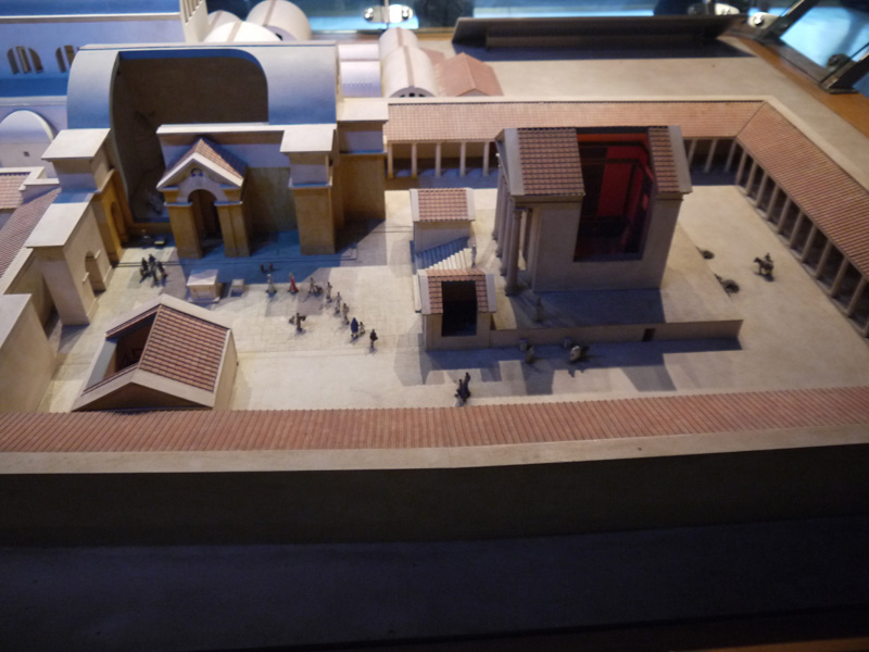 There is also a wall display showing how the front of the temple may have looked. The face is the god of the waters, which some people think is Medusaa, the Gorgon that Minerva has on her shield. Gorgons had snakes instead of hair and if you looked at them you turned to stone!