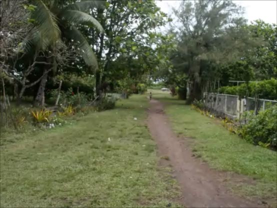 In the time after visiting ‘Eua and before leaving Tonga for Samoa, we spent time on Atata Island, a little further off the coast than our first stop of Pangiamotu. This differed in other ways too, as the island had a resort at one end but also their own village, at the other. The island was shaped a bit like a ………., no, mother said beauty was in the eye of the beholder so you take a look and you decide what it looks like. The village, like Wayalailai in Fiji, relied on getting supplies by ferry, although there was a guy who arrived each morning and sold his fresh catch of fish to the resort and maybe the villagers. There were no cars on the island and this is the main street.