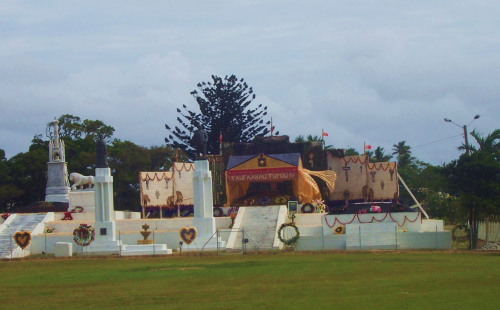 Talking of burials, as you do when King’s die, the picture on the left is from a Tongan cemetery. It was not an unusual sight. Several of the ones we visited were as colourful, and as well looked after, as this in the heart of Nuku’alofa. If I remember correctly, and this is not in my notes, purple was the colour associated with death. Quite often we saw a house where purple sheets had been draped on the walls outside and this, we were told, was because of a recent death.