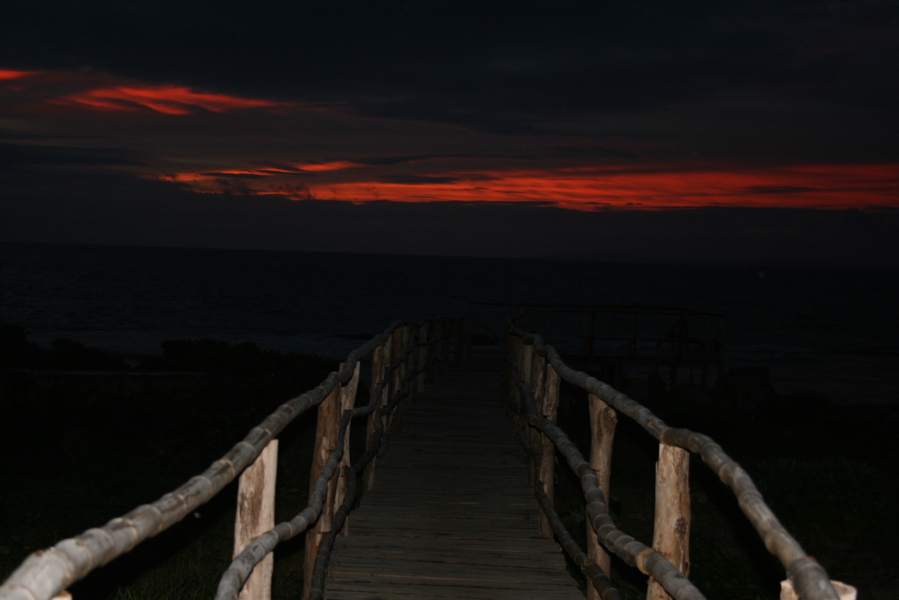 The runway was short, possibly a trifle too short. We touched down on the grass landing strip, and just as we were about to enter the bushes at the end of the runway, the pilot slowed enough for us to turn round and go back to the main terminus. That’s it in the picture; the hut on the right. Not much in the way of customs or immigration control and nothing in the way of comfort. We were met by our new host and driven off to his small resort, which consisted of about 10 huts overlooking the sea.